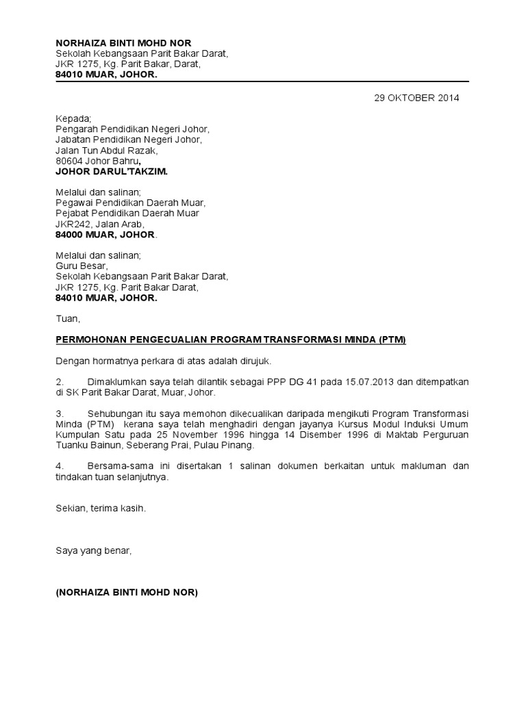 Pekeliling Perkhidmatan ini bertujuan menjelaskan mengenai pelaksanaan Program Transformasi Minda PTM sebagai satu. Pengecualian tersebut hendaklah direkodkan dalam RekodPerkhidmatan pegawai sebagai Pegawai Dikecualikan Daripada PTM kerana telah. Hebahan semakan keputusan temu duga bagi.